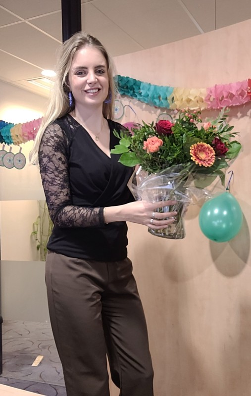 De afgelopen tien jaar heeft ze een waardevolle bijdrage geleverd aan ons team. Met haar inzet, kennis en positieve instelling heeft ze niet alleen veel werk verzet, maar ook bijgedragen aan een fijne sfeer op de werkvloer. Daar willen we je graag hartelijk voor bedanken.